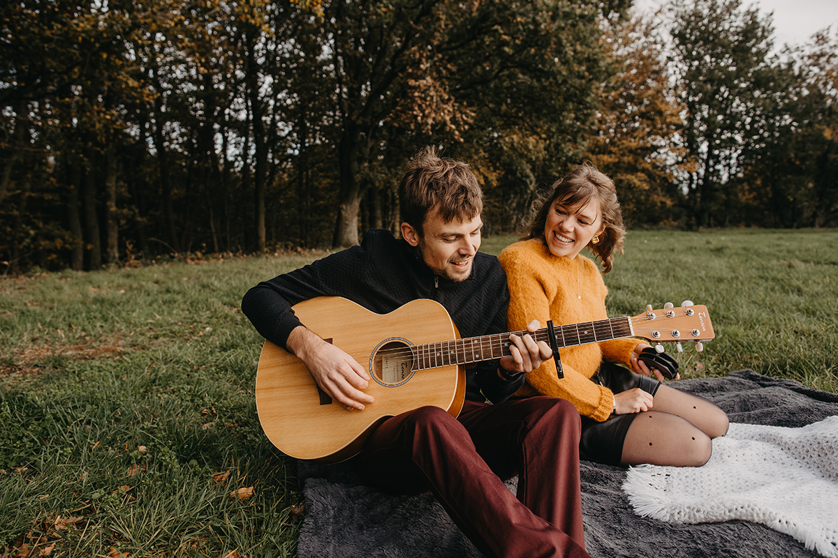 Sophie avait préparé un petit décor : un plaid, des pommes de pin, un châle tricoté, et une guitare ! Gauthier nous a joué quelques morceaux et Sophie a poussé la chansonnette ! J’étais ravie ! C’était juste sublime, un moment hors du temps après cette année chaotique.